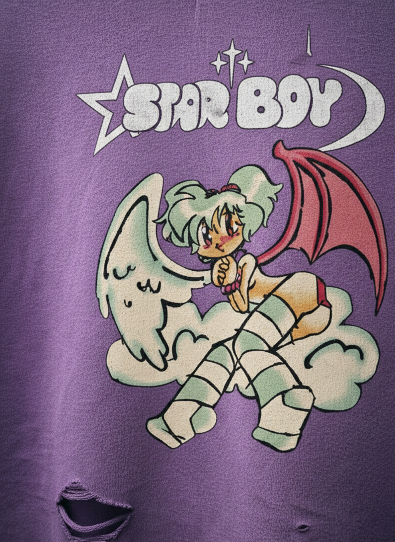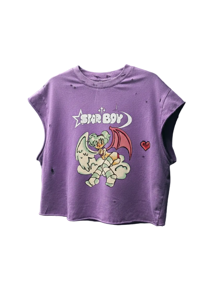 Premium lifestyle tank is made with custom-milled heavy cotton, finished with a signature distressed treatment and raw-edge hem. Star Boy "Heavenly Chaos" artwork is screen printed on the center chest with high-density inks for a vintage, textured look. This garment features a cropped, boxy fit with dropped armholes.